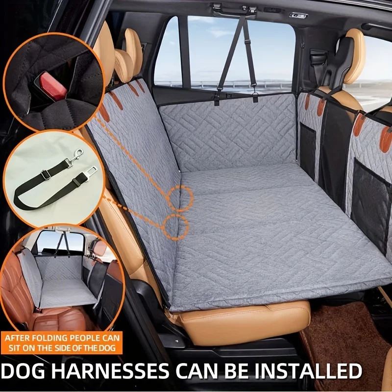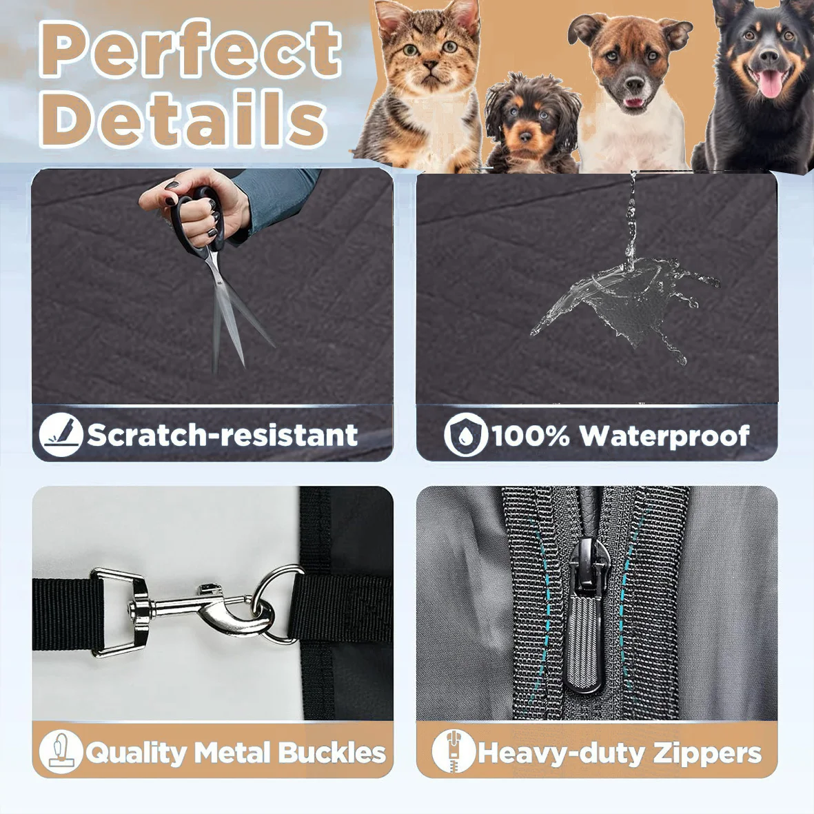 The Pet Car Seat Cover features a waterproof hammock design, ensuring your car remains clean and dry during your dog's travels.